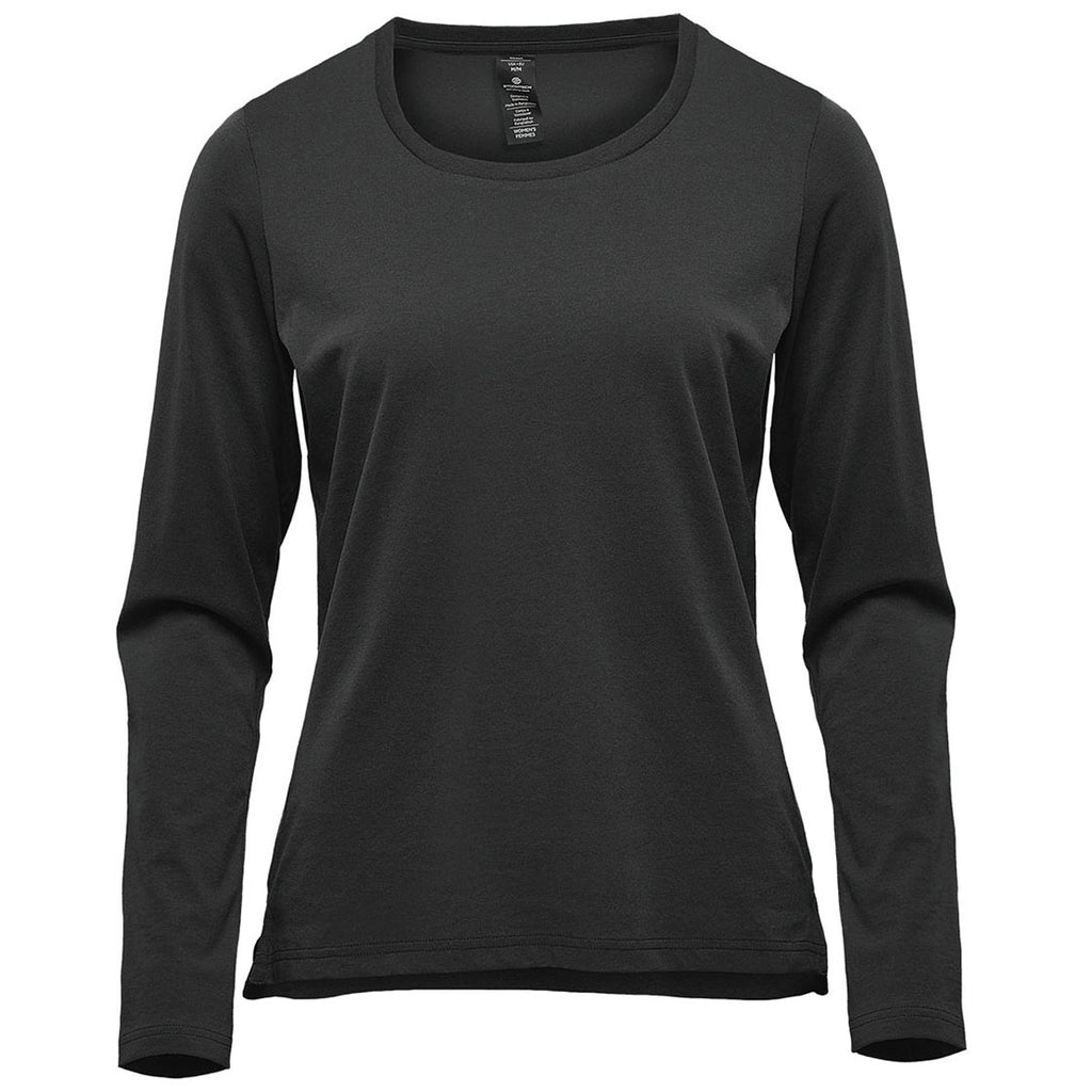 Enjoy screen print on the Stormtech Women's Black Equinox Long Sleeve Tee made from sustainably sourced BCI cotton blended with polyester single jersey fabric. The ultra-soft long sleeve tee offers moisture and odor control for comfortable all day wear and a UPF 30+ rating to protect you from the sun. Add a company logo to use these as employee uniforms or gifts for those who work hard day in and out. Try a custom logo to use in your logoed apparel line to appeal to nearly everyone. Ideal as warm-up gear, workout wear, or for daily use. Place an order today.Highlights