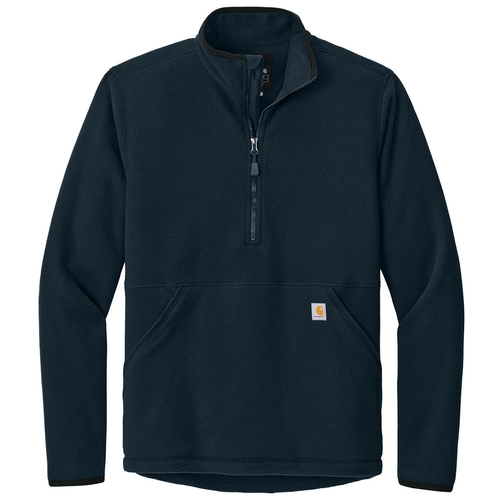 Carhartt Men's Navy Textured 1/2-Zip Fleece Jacket with a corporate logo is a great way to show off your brand at trade shows and special events. Made of 100% polyester, this jacket makes a wonderful gift that will keep the wearer warm and last for many seasons. Great on the job and off. Place an order right away.This product can only ship within the United States and Canada.