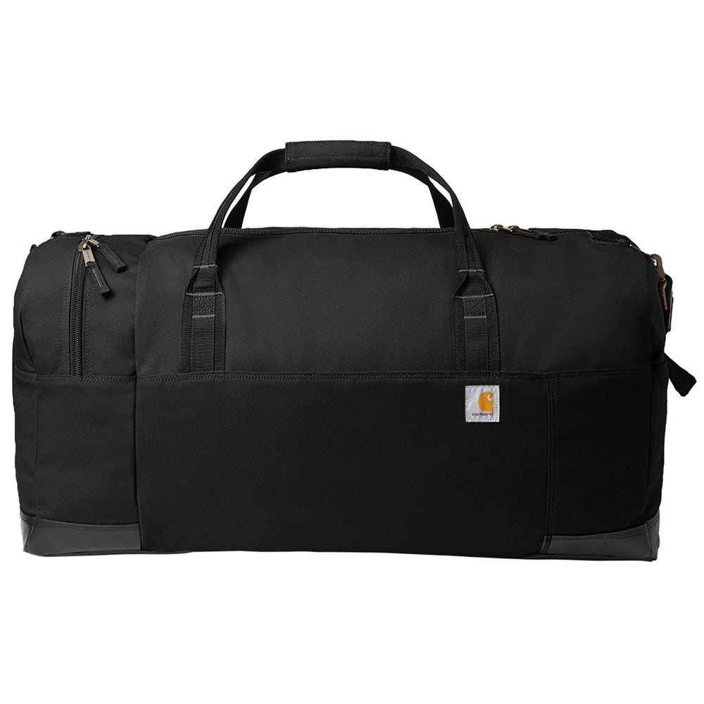 Add embroidery to the Carhartt Black 120L Foundry Series Duffel for a grab-and-go bag that is ready for work or adventure. The water-resistant duffle is 30 inches in length and easily holds clothes, gear, and anything else you may need for your day or trip. Ideal for those who need to travel for work, school, or fun. Place an order today.This product can only ship within the United States and Canada.
