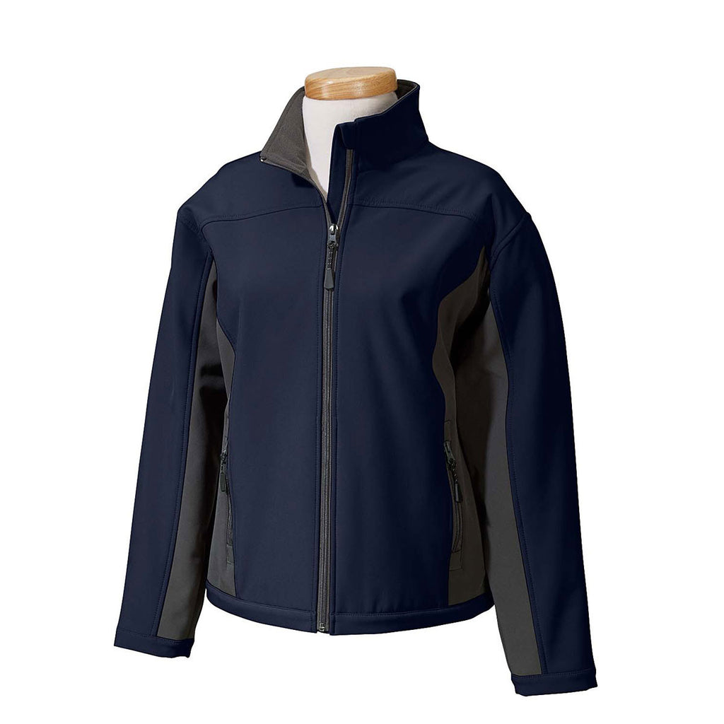 Devon & Jones Women's Navy/Dark Charcoal Soft Shell Colorblock JacketCorresponding Men's Style: Devon & Jones Men's Navy/Dark Charcoal Soft Shell Colorblock Jacket