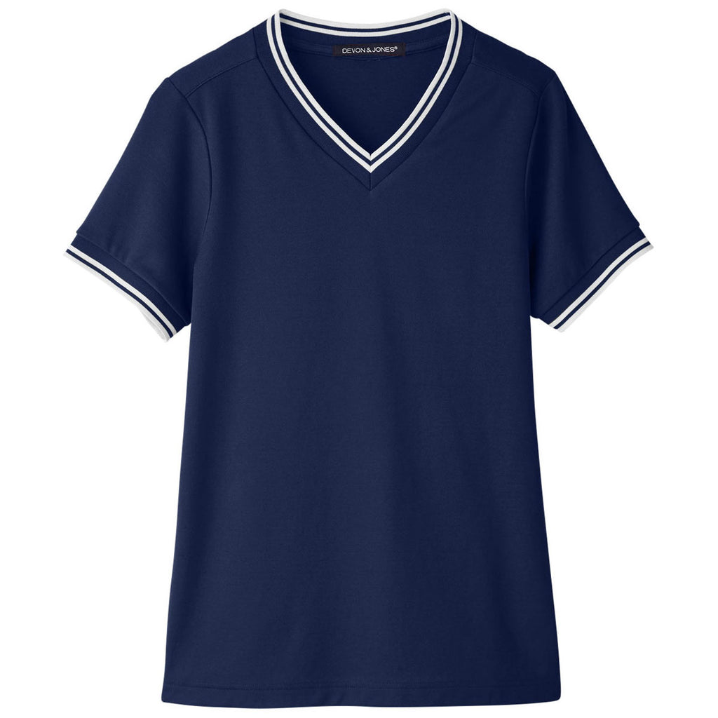 Devon & Jones Women's Navy/White CrownLux Performance Plaited Tipped V-Neck Polo