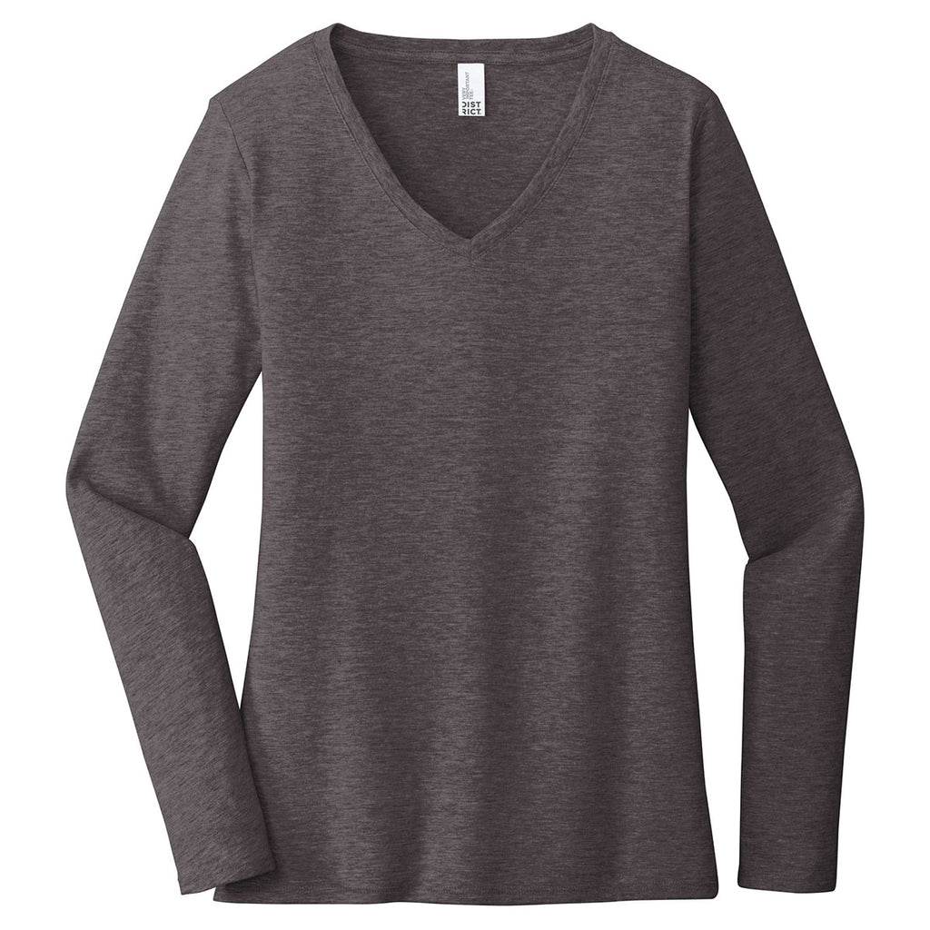 Before the next job fair, turn the corporate recruiting event into a display of fashion expertise by ordering the screen printed District Women's Heathered Charcoal Very Important Tee Long Sleeve V-Neck. The multi-use long sleeve tee works as well as standalone corporate apparel at a casual restaurant, as it does as the first layer of a cold weather fashion ensemble worn on a weekend camping trip. One-hundred percent ring spun cotton feels soft against the body. Add a custom logo to connect with potential customers at civic events. The long sleeve v-neck tee is the ultimate company giveaway.