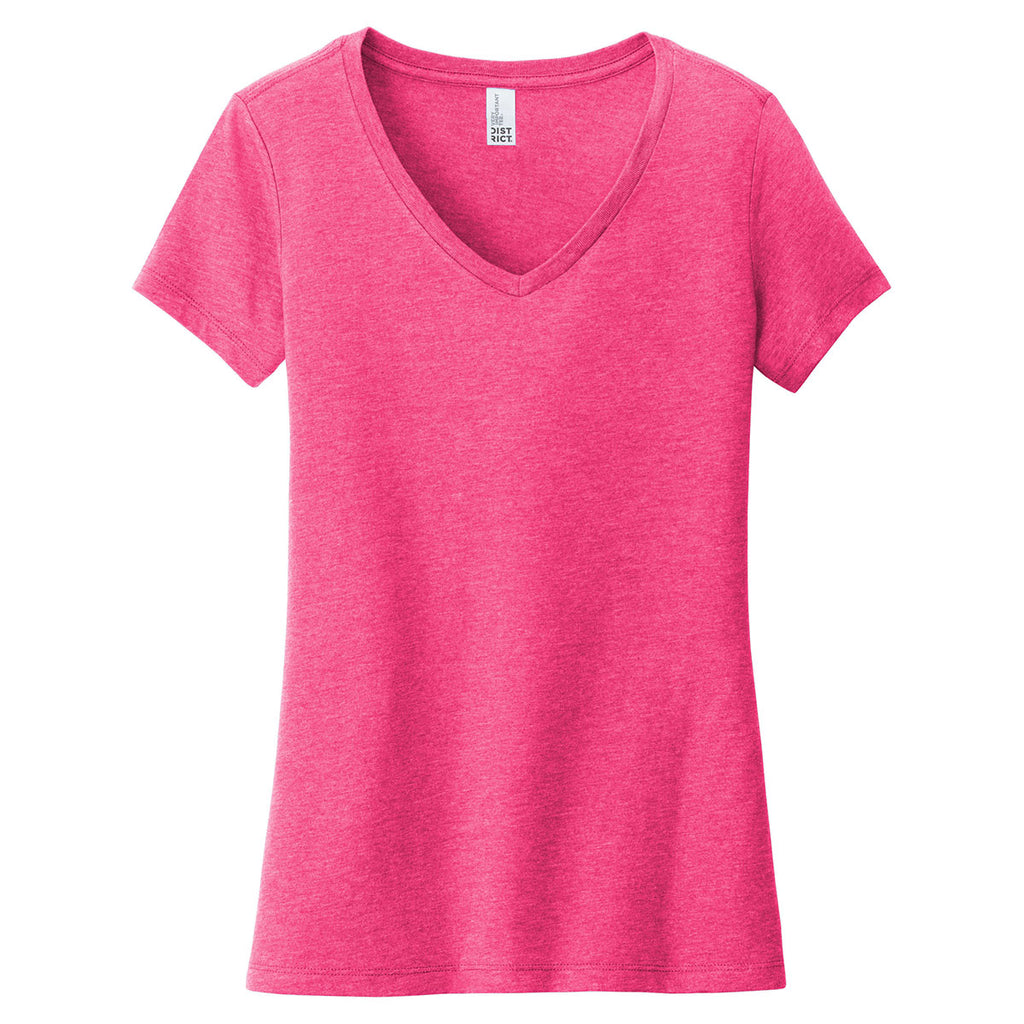 You do not need to wear a tux to feel very important, when you order the decorated District Women's Fuchsia Frost Very Important Tee V-Neck. The fashionable short sleeve shirt features shoulder to shoulder taping that presents a professional appearance for job candidates attending recruiting events. Attach a custom logo to raise the bar for marketing products and services at industry trade shows. Super soft 100% ring spun combed cotton resists rips and tears to give you go to corporate apparel for years to come. The slightly slimmer body and shorter sleeves make the tee v-neck perfect for active outdoor enthusiasts.Highlights