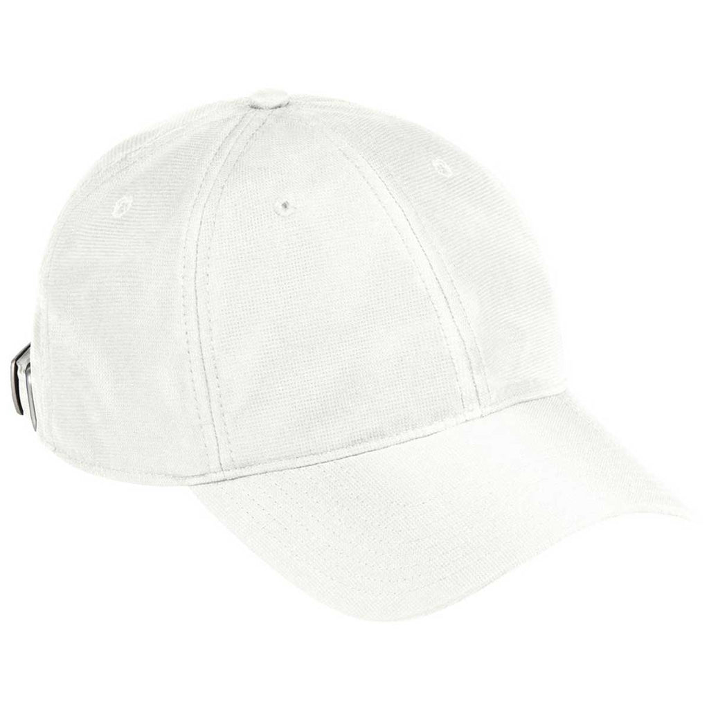 Top off your look with embroidery on the Adidas White Performance Slouch Cap. The one size fits most design has an adjustable back strap with metal buckle for your custom fit. Add a custom logo to the polyester plain weave with a polyester mesh lining and built in cotton twill sweatband. The pre-curved brim with six panel construction has taped seams is great as part of team uniforms or can be worn anywhere you happen to be going for the day. A great custom gift for friends, family, or employees for any occasion.