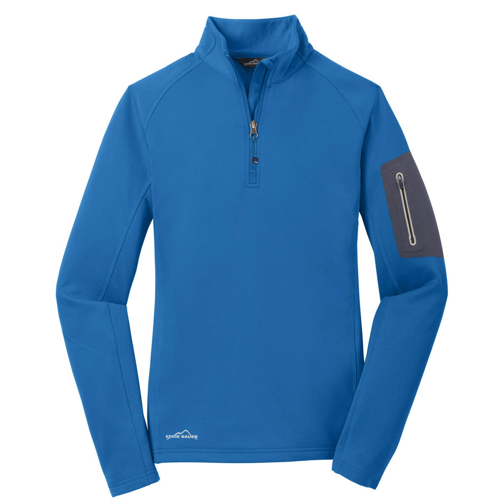 Performance is an underrated art in the world of the fleece jacket. Many people think it's for comfort; but comfort is easy. A jacket like this Eddie Bauer Women's Ascent Blue Half Zip Performance Fleece Jacket goes above and beyond the realm of comfort and adds fashion versatility as well as durability and performance. Maybe that's due to the high-quality, lightweight poly/spandex blend that's every bit as comfortable as it looks all while accomplishing the feat of being much more durable than it appears. Why? Because jackets this good tend not to last. This one does. Add your custom embroidery onto it to make sure your corporate logo lasts just as long.
