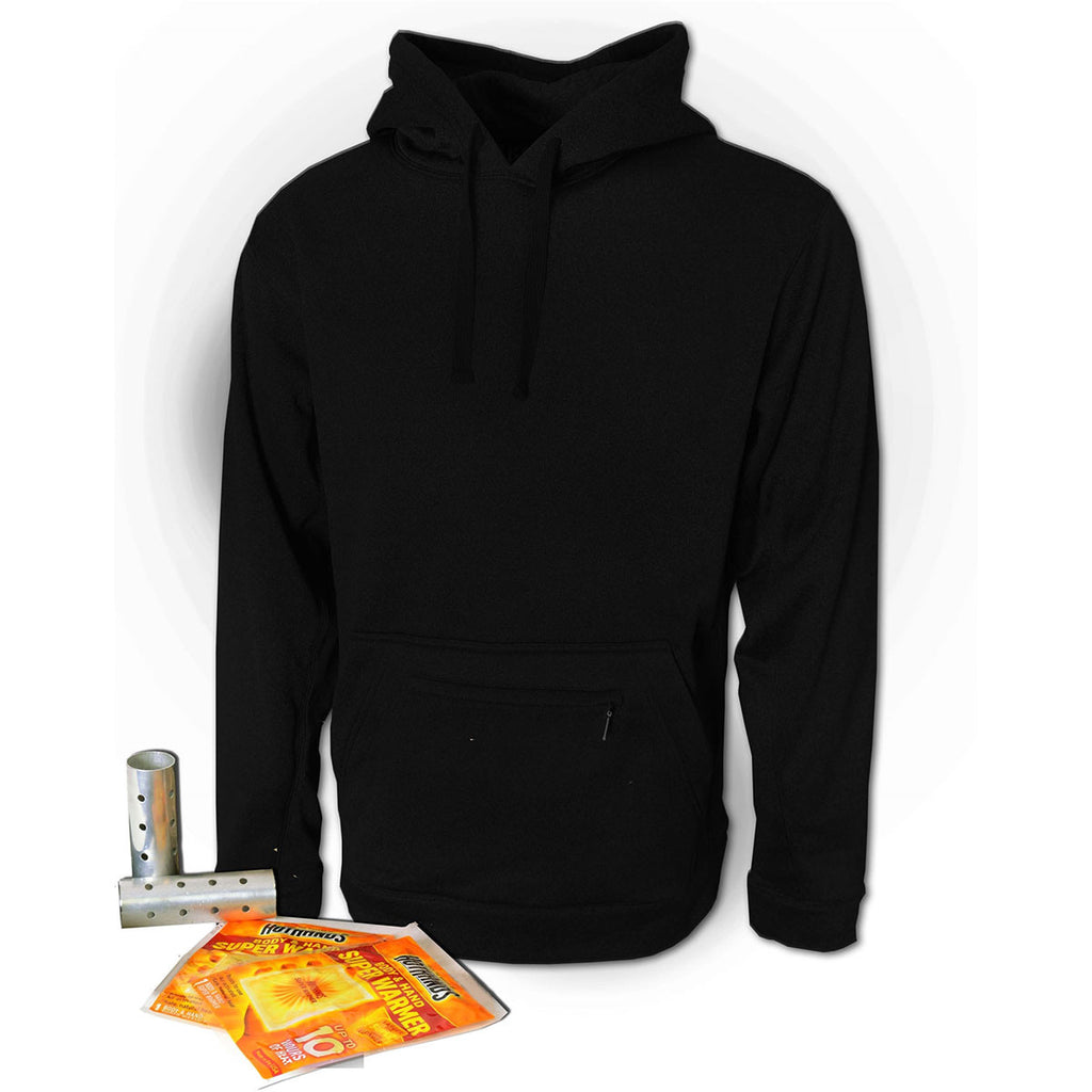 If you know a man who works outside or goes hunting or fishing, he will give you his next catch for the BAW Men's Black Elements Mossy Oak Heavy Duty Fleece. And if you have placed your custom logo on the front, all his buddies will see it and envy him. Yes, it is fully cover-seamed and has dyed-to-match draw cord. But there are also several surprises. It has a front pouch pocket to keep hands warm - and it also has built in heat warmer canisters! Where else will be get one of these? They come in S to 4X. You have your choice of colors and patterns.Highlights