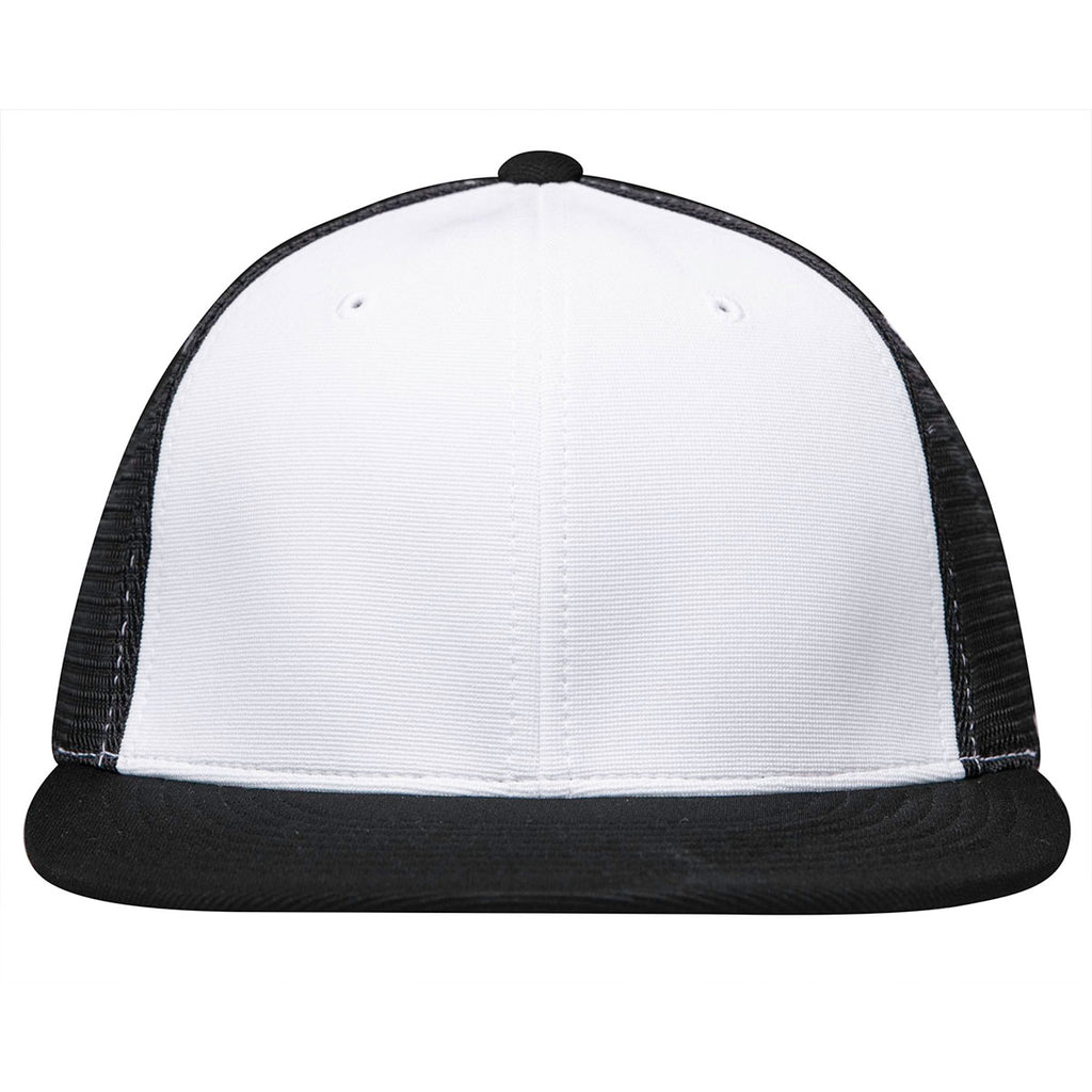 Add embroidery to the Pacific Headwear White/Black/Black Premium M2 Performance Trucker FlexFit Cap for a new take on a true classic. This trucker mesh performance mesh cap has a pro-stitch finish that is durable enough for daily wear as employee apparel or while hanging with friends. Add a custom logo to start building your logoed apparel line with this perfect combination of form, fashion, and function. The FlexFit cap has anti-microbial properties, moisture wicking, and is stain resistant. The full-profile design with a flat visor has a closed back for a one size fits most creation that will be an instant hit.Highlights