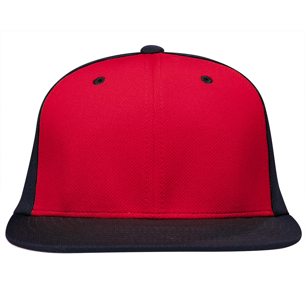 Turn heads with a custom embroidery Pacific Headwear Red/Navy/Navy Premium P-Tec FlexFit Cap made of performance fabric and completed with a pro-stitched finish. The base color is made bolder with contrast colored eyelets and flat visor. Add a company logo to use as part of employee apparel to get your employees noticed or give them as custom gifts to loyal customers. The graphite undervisor with shapeable visor conforms to what you want and moisture wicking makes it comfortable for all day wear, even in warmer environments. A closed back means this is a one size fits most design.Highlights