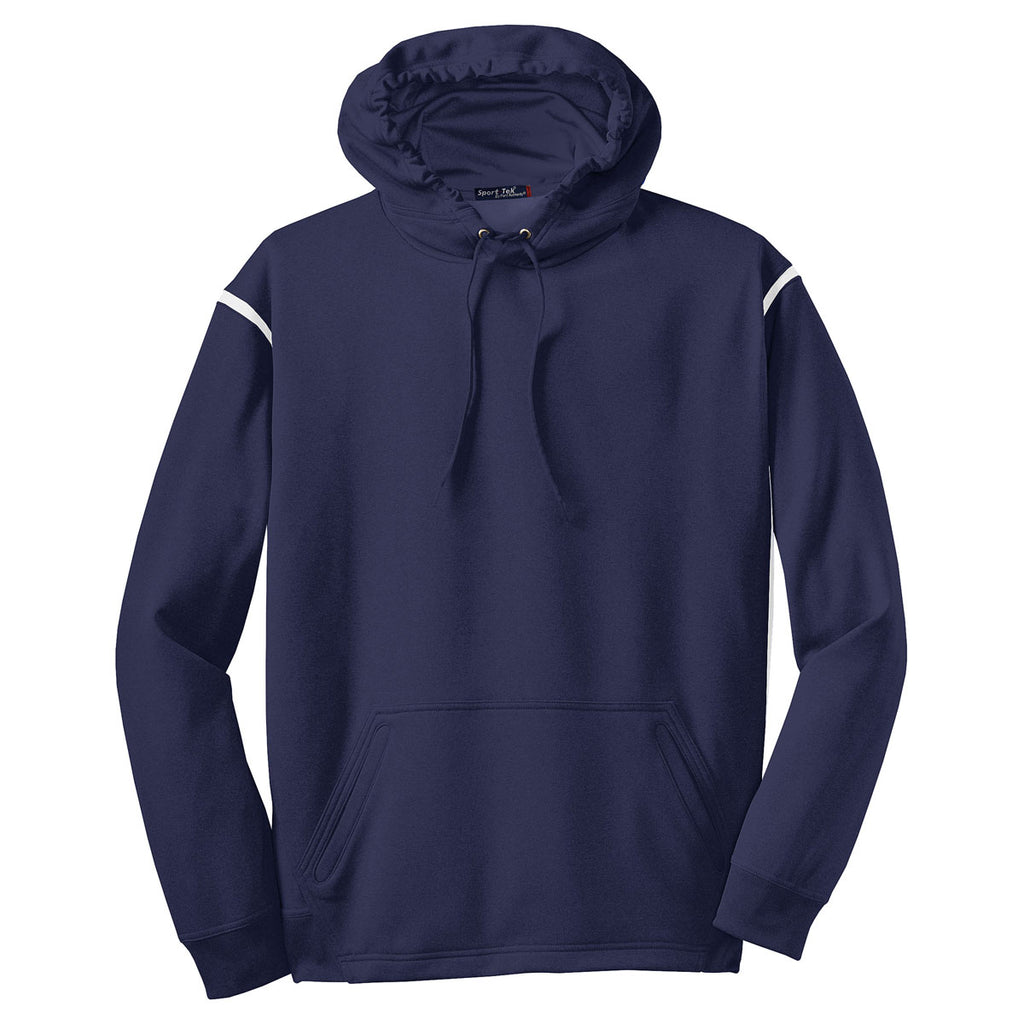 When the mercury goes down, your layering needs to go up. You know what we mean by layering, right? Take the Sport-Tek Men's True Navy/White Tech Fleece Colorblock Hooded Sweatshirt. This is a comfortable and durable layering item that you can use to gift your employees with warm and fashionable clothes to wear around the workplace. Just add your custom logo to the front and you've created something branded specifically to your company.Highlights