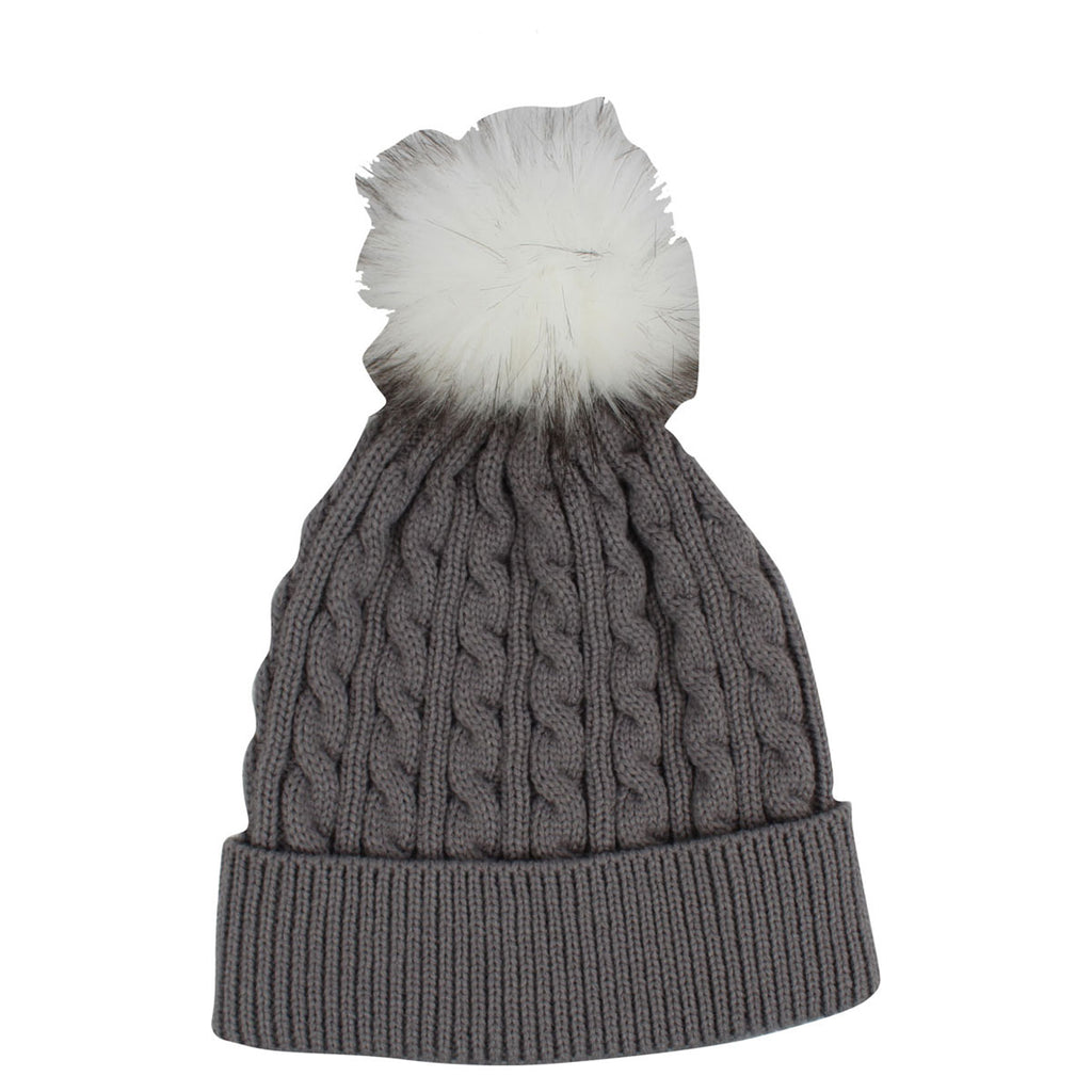 Kate Lord Women's Slate Grey/White Knit Fur Pom Beanie