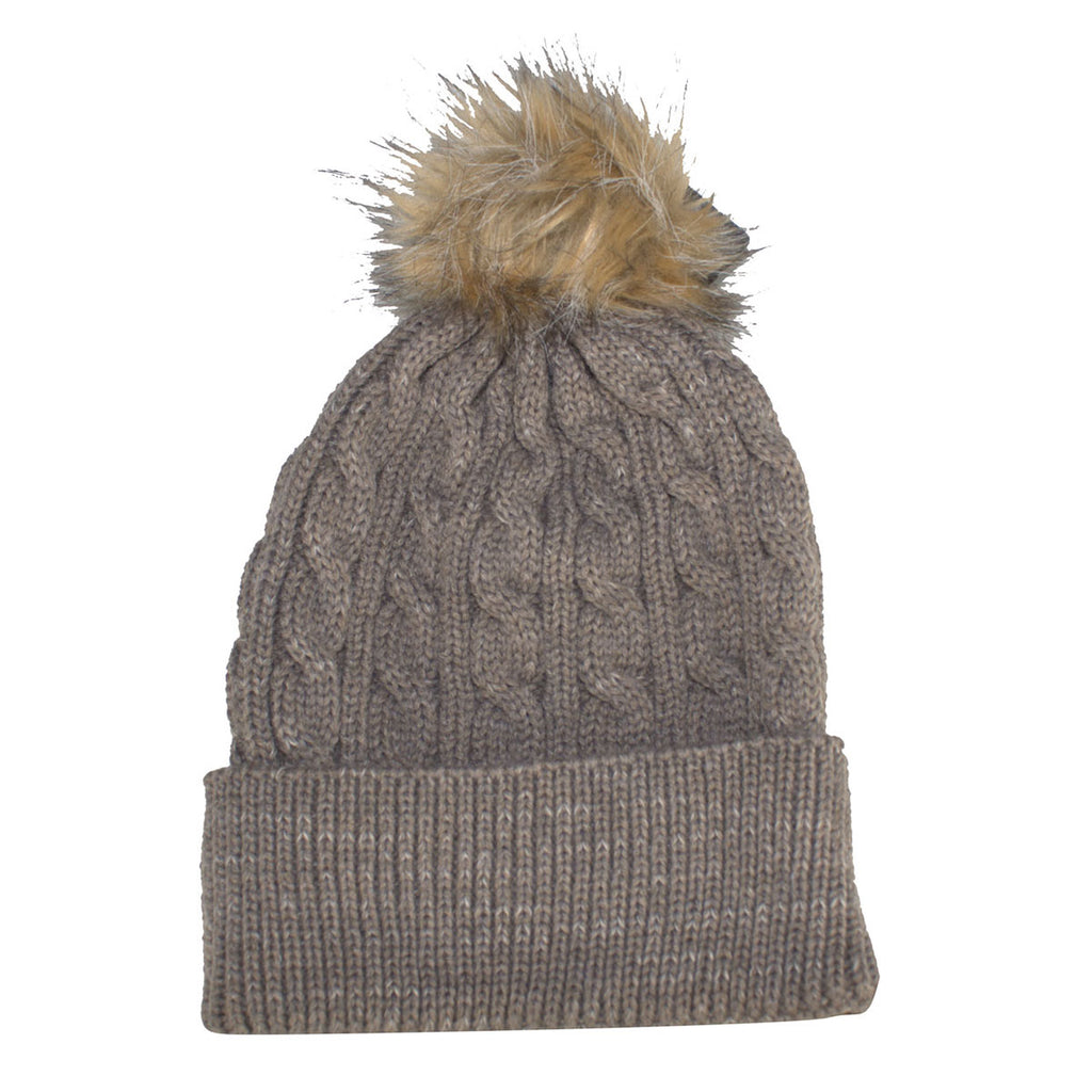 Kate Lord Women's Hazel Heather/Tan Knit Fur Pom Beanie