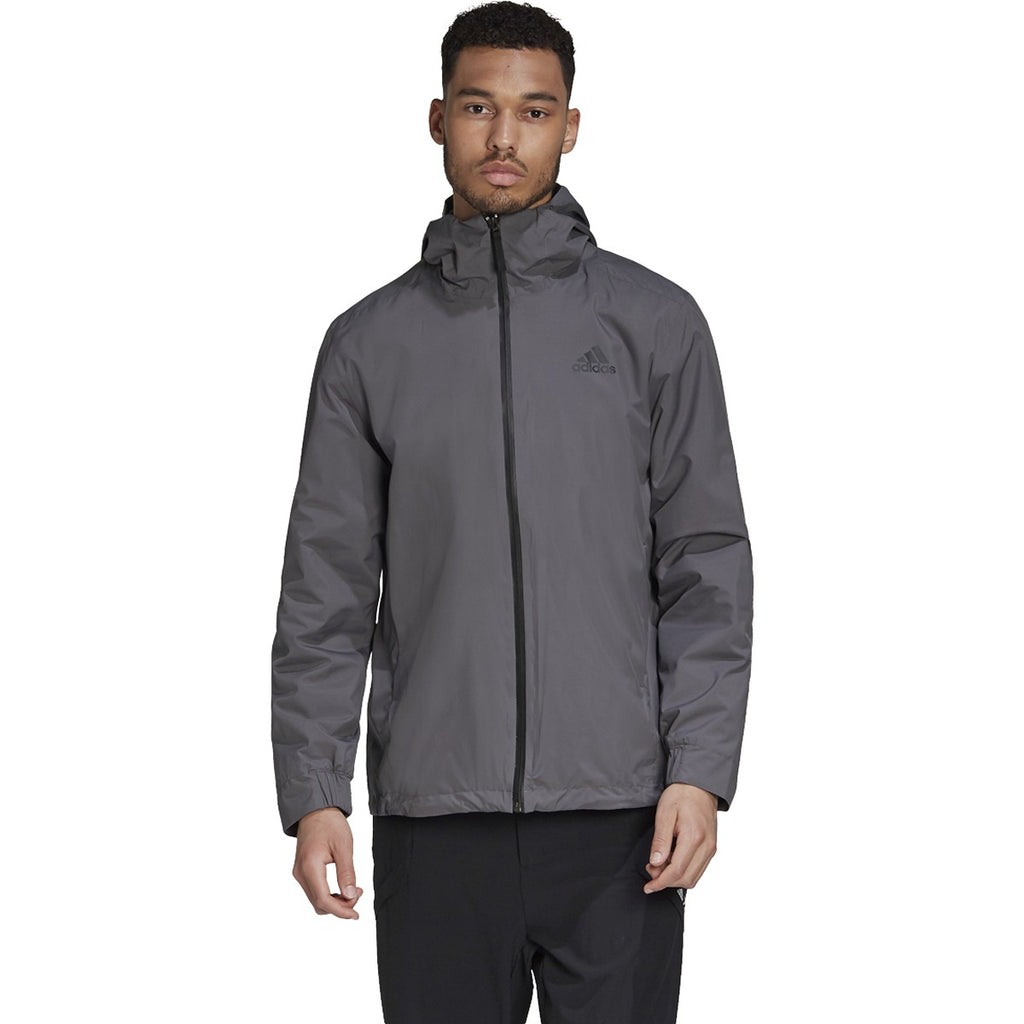 Add embroidery to the Adidas Men's Grey Five BOS 3-Stripe Rain Ready Jacket for a custom look that will have you ready for anything. Made of 100% recycled polyester plain weave in a regular fit, this jacket is waterproof, windproof, and offers a full zip storm flap. Fully lined, the coat can carry your company logo in embroidery to use as employee apparel or to give as custom gifts that are fun and functional. Fully lined, this is ideal for fall weather that is unpredictable. Side seam pockets, a drawcord adjustable hood and hem, make this jacket perfect for both work and play.