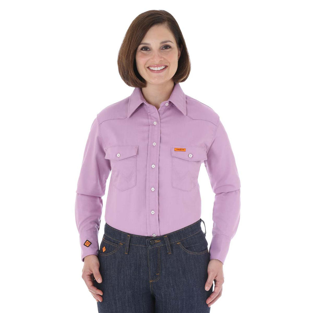 Wrangler Women's Purple Flame Resistant Long Sleeve Solid Workshirt