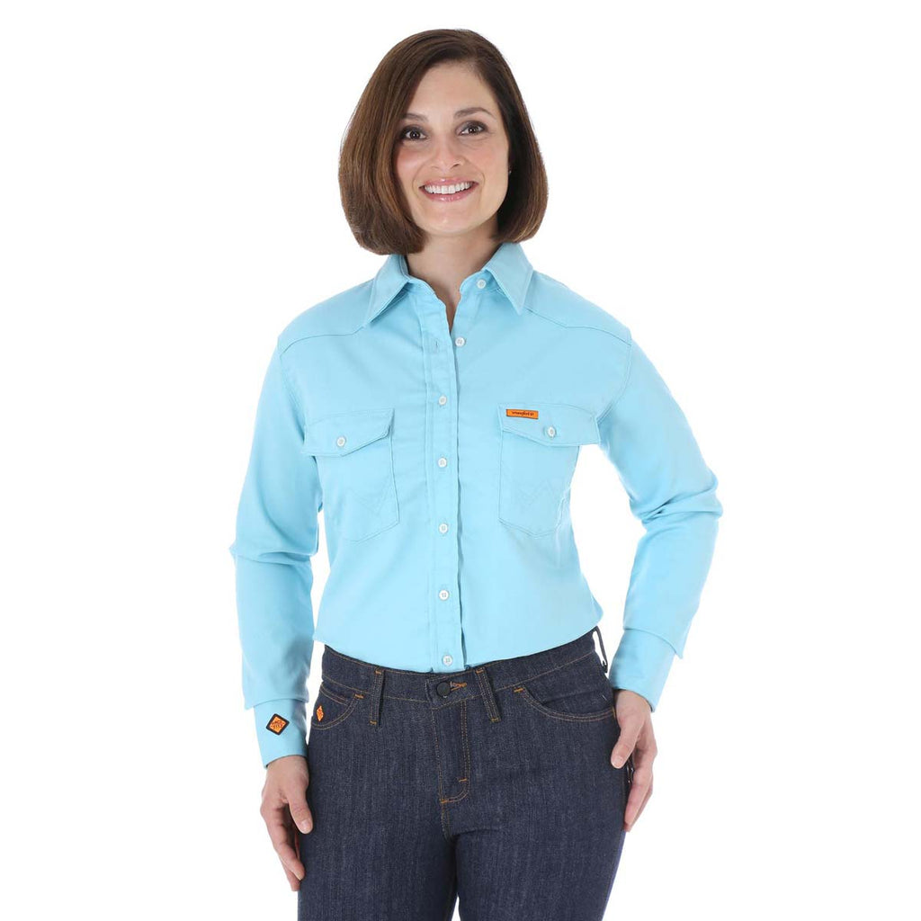 Wrangler Women's Turquoise Flame Resistant Long Sleeve Solid Workshirt