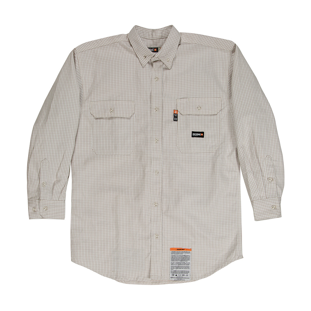 Berne Men's Khaki Flame-Resistant Down Plaid Work Shirt