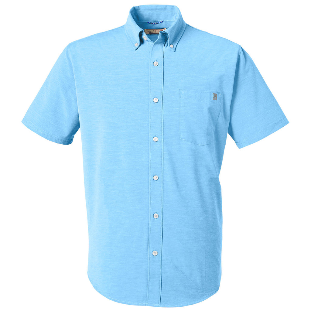 Add a corporate logo to the HUK Men's Marolina Blue Kona Solid Short Sleeve Shirt for the perfect workwear for many professions. This tough shirt has 4-way stretch and a UPF of 30, with an interior eyewear wipe for convenience. Create your own uniforms for mechanics, salespeople, or even servers. Create something today.Highlights
