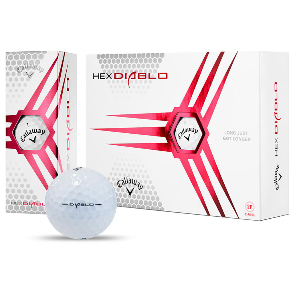 - The Callaway Hex Diablo has high resiliency to increase ball velocity for long distance with incredibly soft feel. With its ionomer cover the Diablo promotes optimal, low driver spin for devilishly long drives. Hex aerodynamics replaces conventional dimples to reduce drag for a more penetrating ball flight.