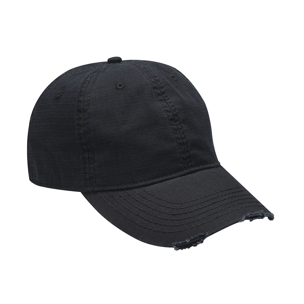 Boost the image of your products and services by giving away the custom logoed Adams Black Image Maker Cap. Adjust the self fabric back strap by connecting it with the silver clasp and buckle to achieve the best fit. One-hundred percent cotton rip stop fabric feels soft on the head to keep your mind on the game. Matching color heavy raised stitching on the crown and visor creates a chic look that will get you noticed at industry trade shows. With all eyes focused on the attractive cap, display the company logo attached on the imprint area. With a logo, you enjoy an affordable way to spread the word about your brand.Highlights