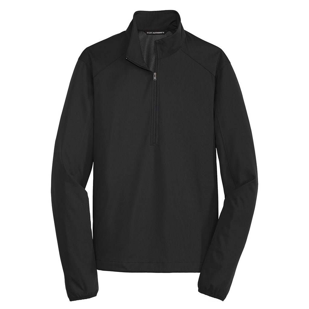 Have you ever worn a jacket that made you feel rigid? You couldn't wear the jacket for performing home improvement projects, because the jacket stiffened every time you needed to reach for something or wrap your arms around an object. The versatile Port Authority Men's Deep Black Active 1/2-Zip Soft Shell Jacket allows plenty of stretch to maximize movements. It looks professional for work and suave for attending social events. Water resistant polyester keeps you dry during a sudden downpour. The highly breathable interior mesh liner circulates air to eliminate sweat. Add your company logo to the jacket for promoting your brand at professional networking events.Highlights