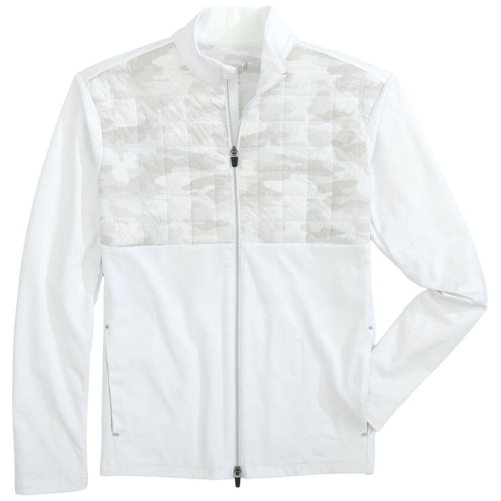 Johnnie-O Men's White Godwin Performance Jacket with a custom logo is the perfect casual golf jacket when the weather is questionable. Made of a moisture-wicking nylon base with a patterned chest piece, this stretchy jacket is a must-have for those who are active and enjoy the outdoors. Place an order right away. These will sell fast.Highlights