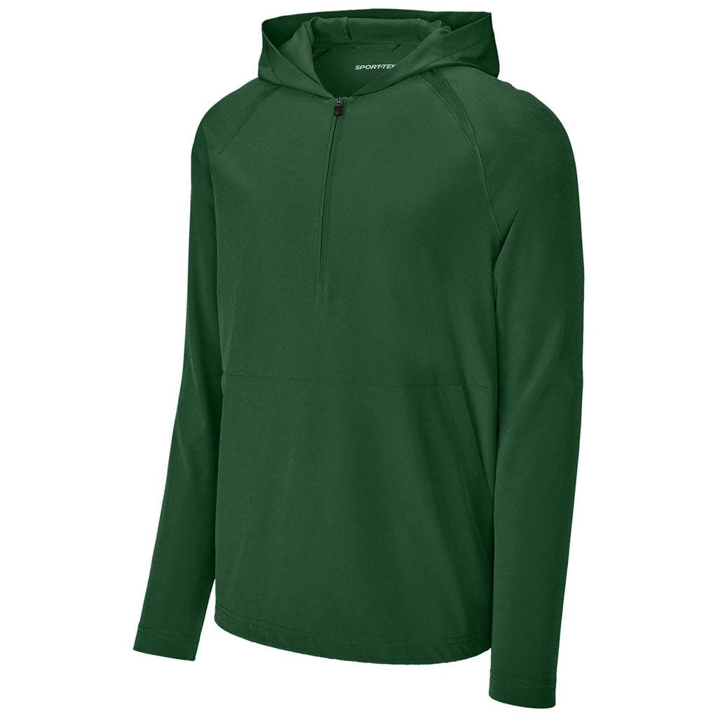 Enjoy a custom look with the Sport-Tek Men's Forest Green Repeat 1/2-Zip Long Sleeve Hooded Jacket. This pullover 1/2-Zip is snag resistant making it great as part of team gear or warm-up wear. An attached hood and adjustable hem create a custom fit whether hiking, biking or just enjoying the Great Outdoors.Highlights