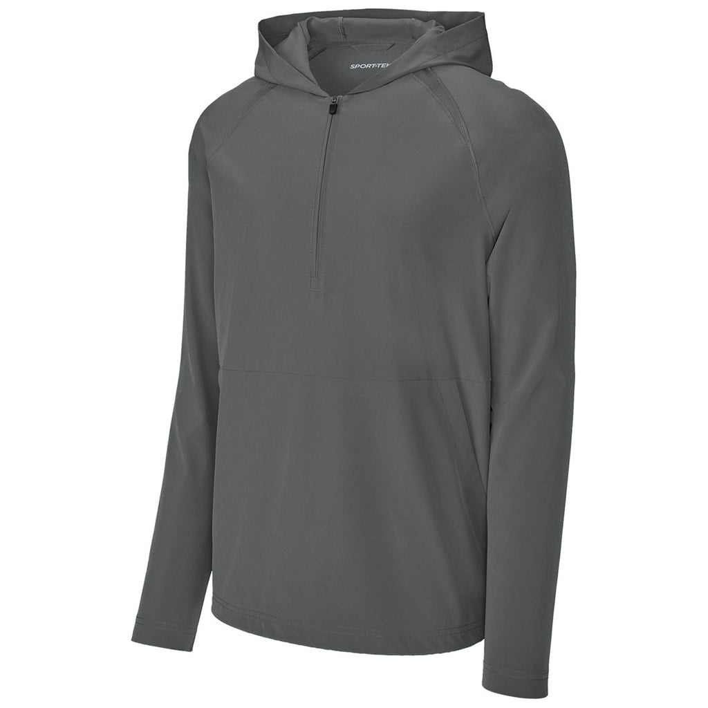 Enjoy a custom look with the Sport-Tek Men's Iron Grey Repeat 1/2-Zip Long Sleeve Hooded Jacket. This pullover 1/2-Zip is snag resistant making it great as part of team gear or warm-up wear. An attached hood and adjustable hem create a custom fit whether hiking, biking or just enjoying the Great Outdoors.