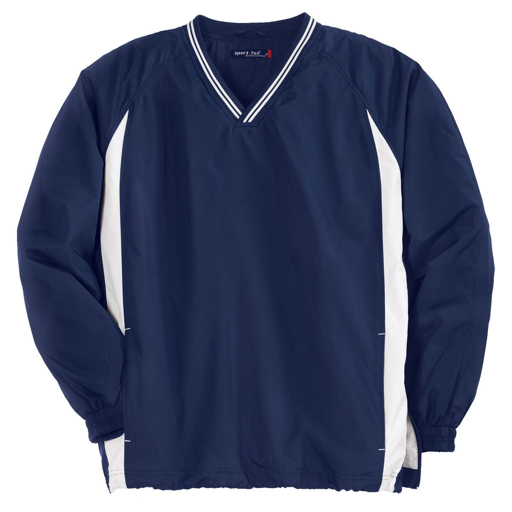 An item like might be as comfortable as it gets, but don't forget the Sport-Tek Men's True Navy/White Tipped V-Neck Raglan Wind Shirt also serves a practical purpose: warmth. And it'll keep you stylish. And it doesn't hurt that it can make some great company apparel upon which you can add your corporate logo. Just add that logo to this and you'll have a gift, a giveaway, a uniformheck, you can do whatever you like with it.Highlights