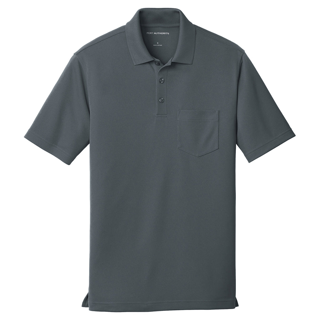 Make your next company event the talk of the industry by giving away the corporate shirt that is perfect for your custom embroidery, the Port Authority Men's Graphite Dry Zone UV Micro-Mesh Pocket Polo. Whether you host a competitive race, or spend a day recruiting new team members, the moisture wicking polo from Port Authority makes a positive lasting impression on everyone who receives the sleek corporate gift. The flat knit collar and three-button placket separate the polo from the rest of the competition. Add a custom logo to take your company to the next marketing level.Highlights