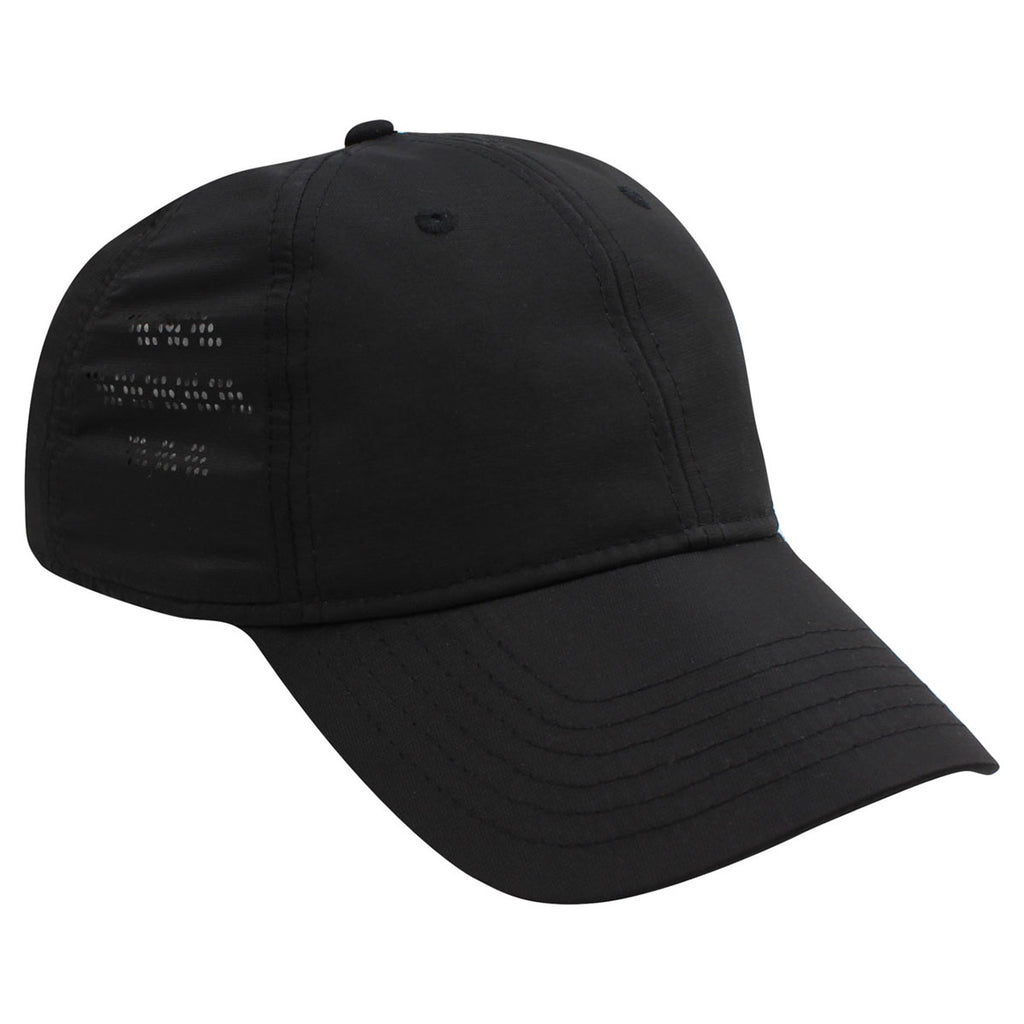 The sporting events loving ladies in your company and life will love the Kate Lord Black Performance Air-Lite Cap. Offering a ladies cut for easier wear the Aegus Tech fabric with laser cut side panel design will keep you cool while working and playing your hardest. Add a custom embroidery to showcase your brand then offer these caps as a corporate gift or even use as corporate logo for those who may need a hat as part of a uniform. The perfect headwear to look good while staying protected from the sun, start creating the company logo you want displayed today.Highlights
