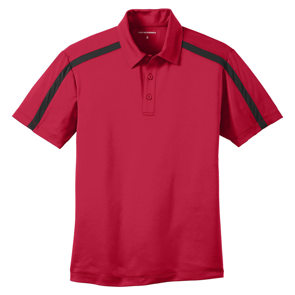Port Authority Men's Red/Black Silk Touch Performance Colorblock Stripe Polo
