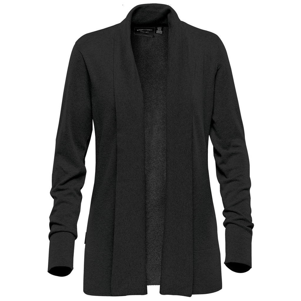 Choose embroidery for the Stormtech Women's Black Soho Cardigan for an elevated look that is on-trend in the urban wardrobe mix. This 3/4 length cardigan is perfect for cooler weather or when you need an extra layer to complete a look. Add a custom logo to use as part of employee apparel in an office setting or as employee gifts that can be enjoyed year round. This is a casually cultured look that most would appreciate in their wardrobe. Perfect for corporate apparel or just to lounge at home.Highlights