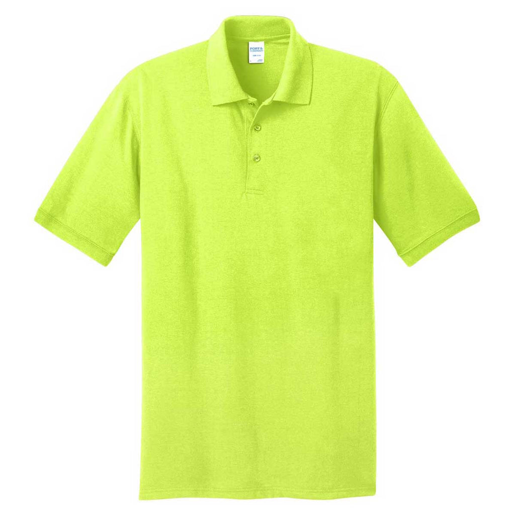 Energize your summer uniforming with this solid-hued style polo shirt crafted from a cotton-polyester blend that provides you with free movement and keeps you comfortable throughout the day. Treated with Soil Release for easy cleanups. It can be easily paired with contrasting chinos, cargoes or denim for an effortless look and style. Double-needle stitching hem means durability. With an emblazoned logo or branding message, this Port & Company Men's Safety Green Tall Core Blend Jersey Knit Polo is perfect for employee's uniforms to enhance professionalism, foster company's corporate identity, raise awareness and to develop a sense of brand credibility and identity.