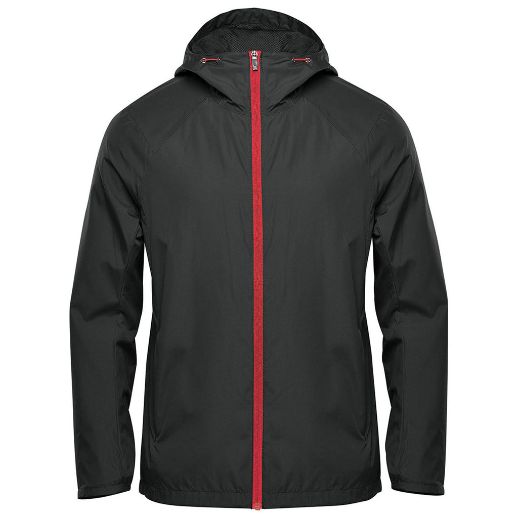 Choose custom embroidery for the Stormtech Men's Black/Bright Red Pacifica Jacket to create the ultimate custom gift for everyone on your list. The urban inspired, outdoor ready jacket is lightweight and sleek with back mesh ventilation and articulated elbows for ease of movement. Perfect for those pop up showers, the attached hood keeps you protected and zippered hand pockets keep small items secure. Add a company logo to use as extra pieces of uniforms for those who work outdoors or a custom design to add these to your logoed apparel line. Place your order today.Highlights