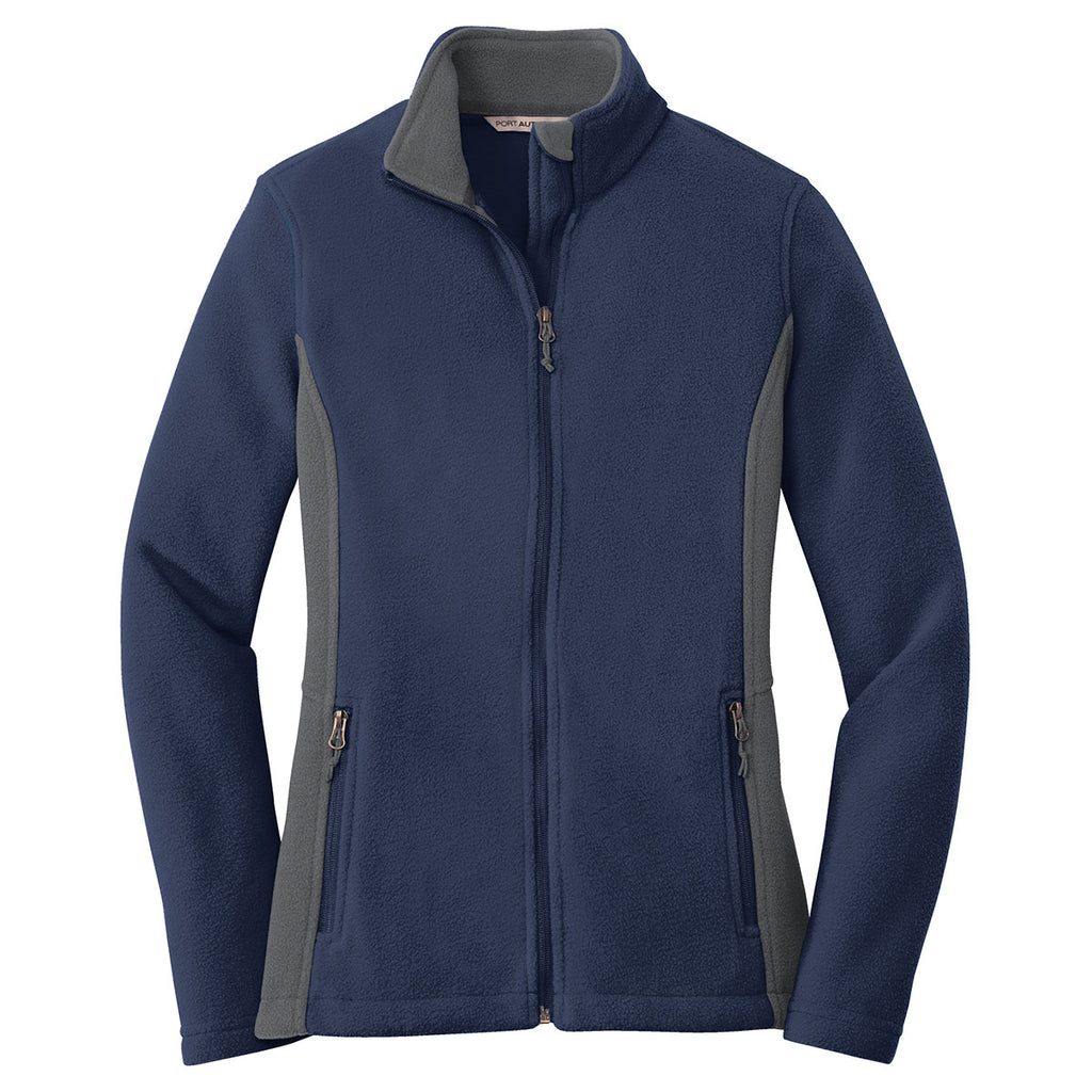 The Port Authority Women's True Navy/Battleship Grey Colorblock Value Fleece Jacket includes an open hem and drawcord that allows you to adjust the jacket to accommodate sudden weather changes. Open cuffs enhance the comfort level of the lightweight jacket, which makes the jacket popular among hikers and joggers. Highly breathable polyester microfleece keeps you skin cool by quickly evaporating perspiration. Front zippered pockets keep all of your valuables secure. Place your smartphone in one of the pockets and have instant access to make an important business call. Add a custom logo to the large imprint area to promote your company at industry conferences.Corresponding Men's Style:Port Authority Men's True Navy/Battleship Grey Colorblock Value Fleece Jacket