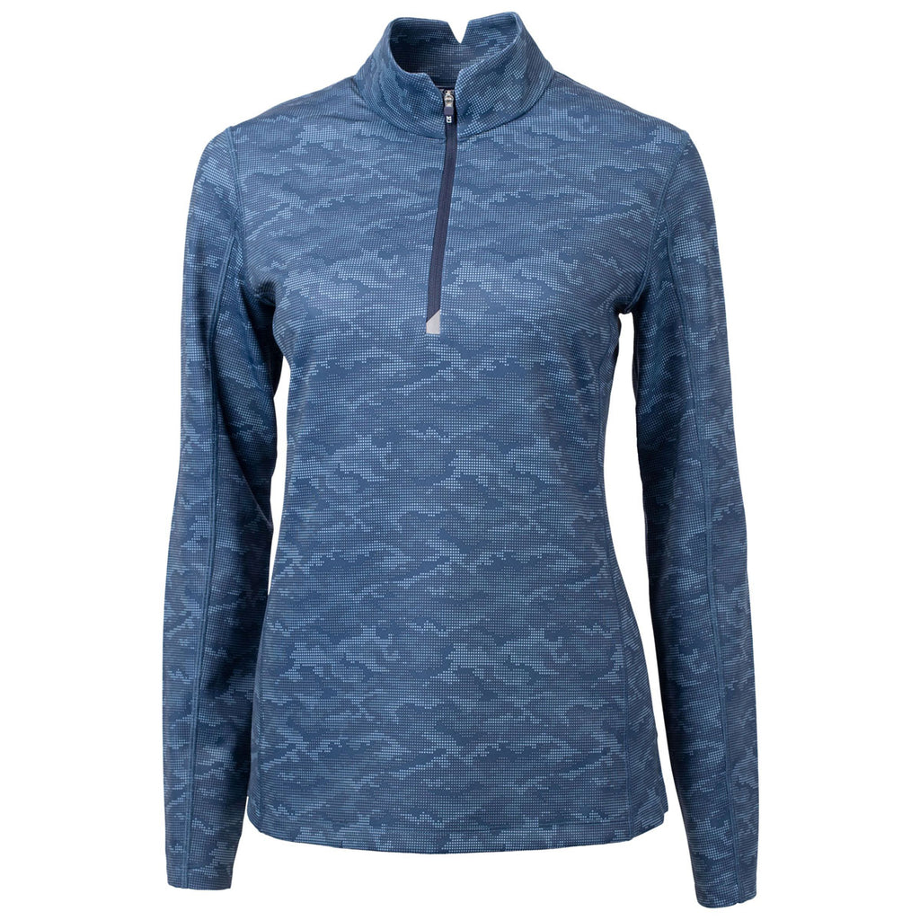 Cutter & Buck Women's Navy Blue Traverse Camo Print Stretch Quarter Zip Pullover
