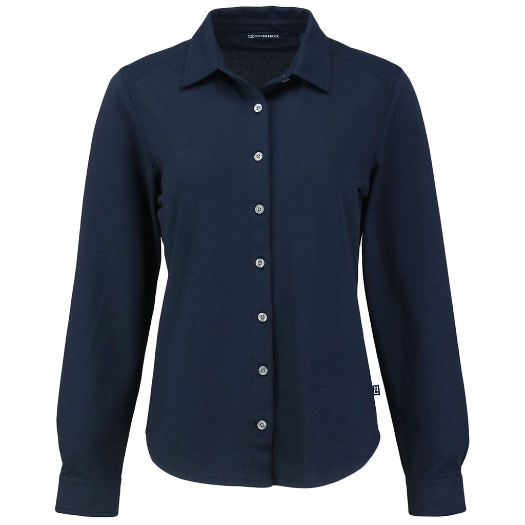 Cutter & Buck Women's Liberty Navy Advantage Tri-Blend Eco Soft Pique Long Sleeve Knitted Button Down