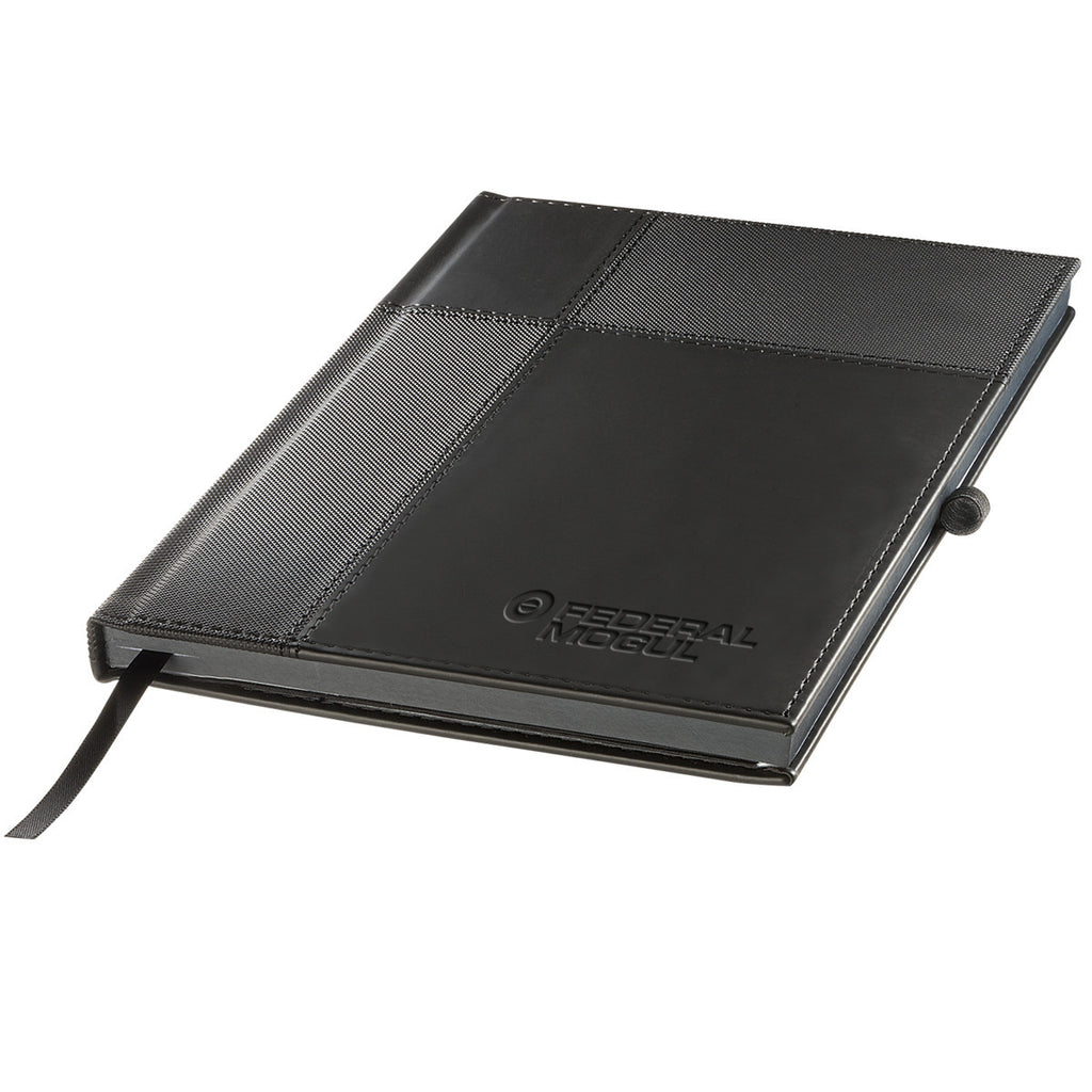 The minimum order for this product is 25 piecesSupple faux leather feels soft in your hands, when you carry the Leeman Black Tuscany Duo-Textured Journal into a business meeting. Contrasting textured panels exude panache to create a lasting impression on everyone you meet. With the attention on you, take advantage of the large Deboss imprint area to attach a custom logo that customer prospects recognize as your company. The highly functional textured journal includes a matching bookmark and strong elastic closure. Eighty pages of ruled paper allow you to organize your notes for business presentations.