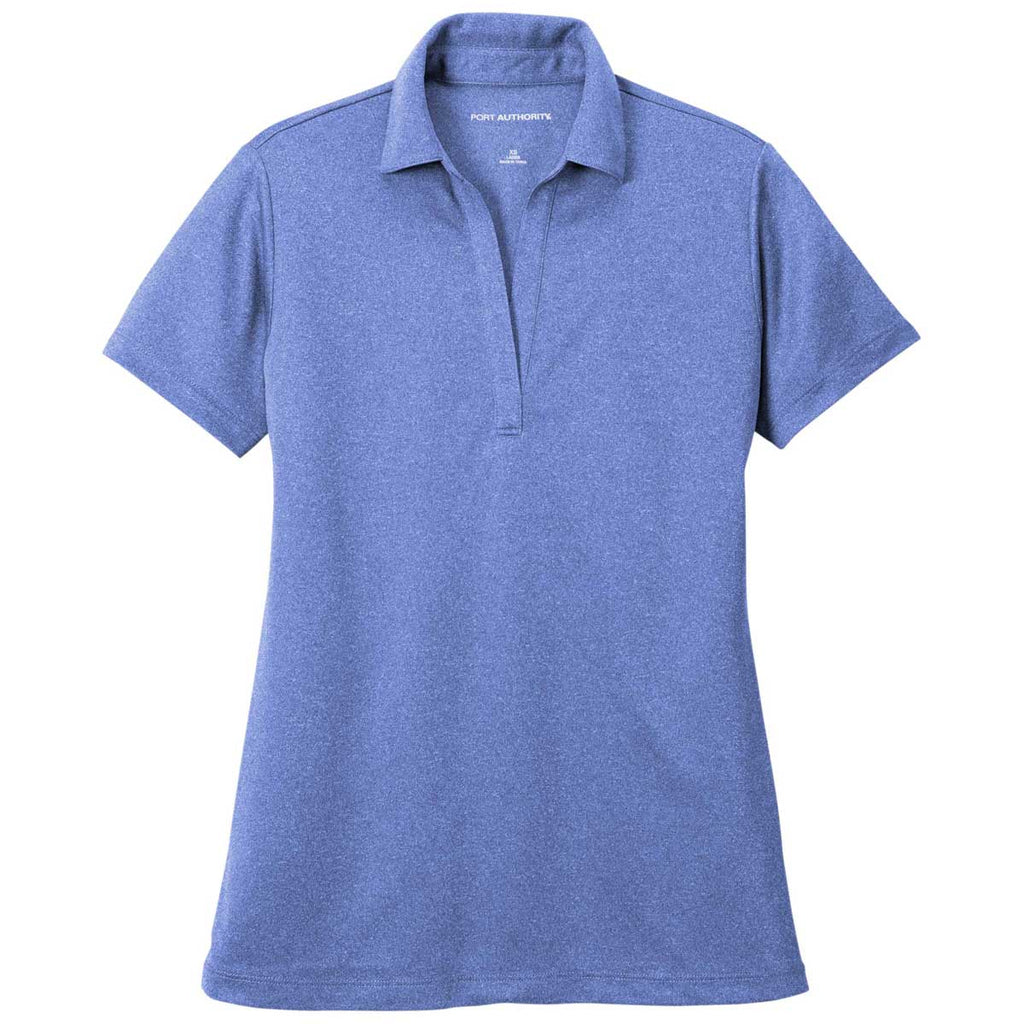 Choose embroidery for the Port Authority Women's Moonlight Blue Heather Heathered Silk Touch Performance Polo for a custom look that will go anywhere. The popular Silk Touch performance polo expands the options when it comes to creating employee apparel that is fashionable, easy to care for, and professional. Add a company logo to the snag resistant, moisture wicking, V-neck polo with PosiCharge technology. Made of 100% polyester, this V-neck will be an instant favorite for all who get the chance to wear it. Add a custom logo to add to your personal wardrobe or create a logoed apparel line that will fly off the shelves.