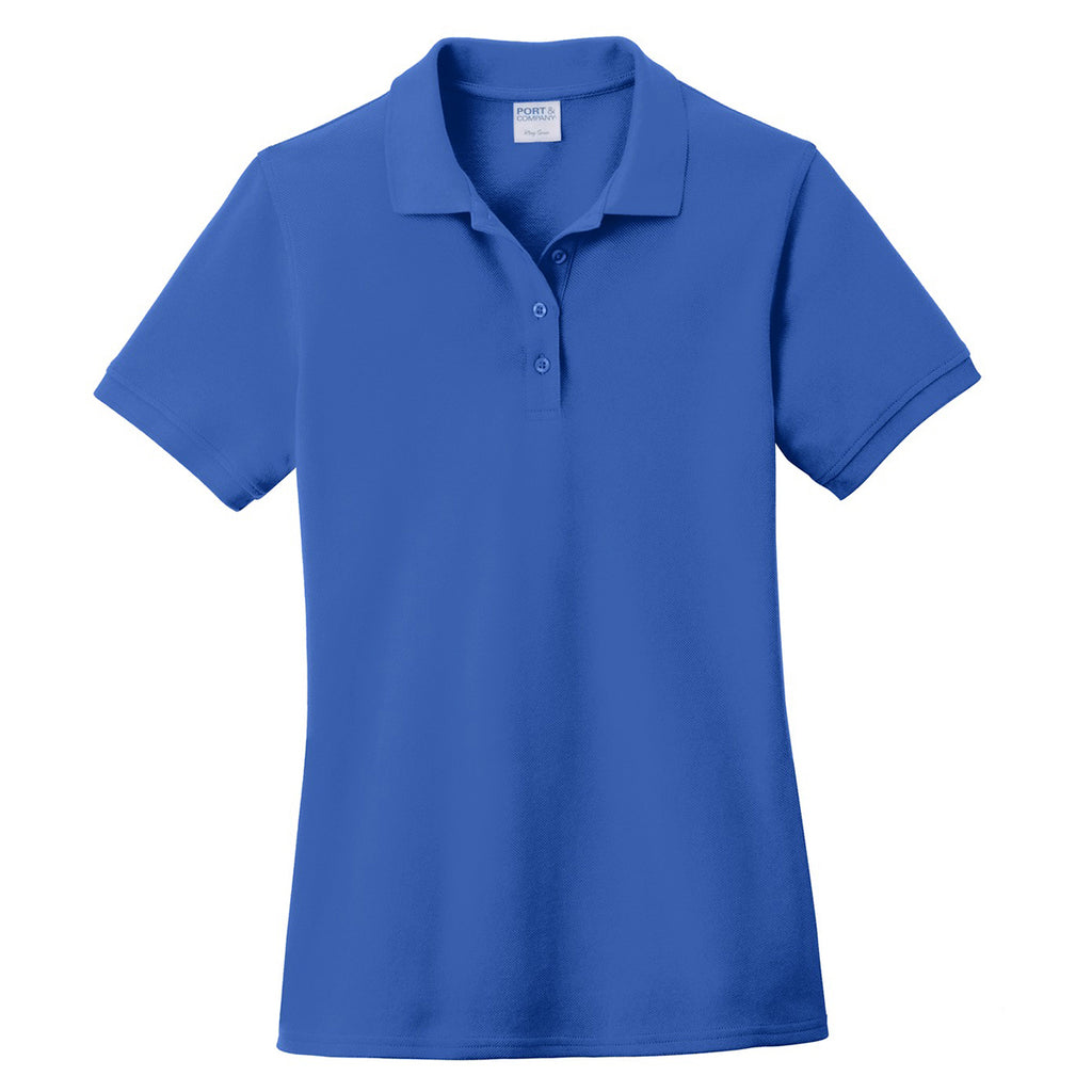 With a built-in resistance to shrinkage, the logoed Port & Company Women's Royal Ring Spun Pique Polo contains 100% super soft ring spun cotton to keep you comfortable throughout the day. The stain release finish ensures you feel and look as fresh at the end of the day as you did when you put the pique polo on first thing in the morning. Rib knit collar and cuffs create a visually appealing look that makes you stand out at the next industry trade show. Attach your corporate logo to the large imprint area to promote your company at civic and professional networking events.Corresponding Men's Style: Port & Company Men's Royal Ring Spun Pique Polo