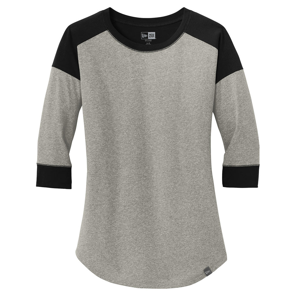 New Era Women's Black/Rainstorm Grey Heather Heritage Blend 3/4 Sleeve Baseball Raglan Tee