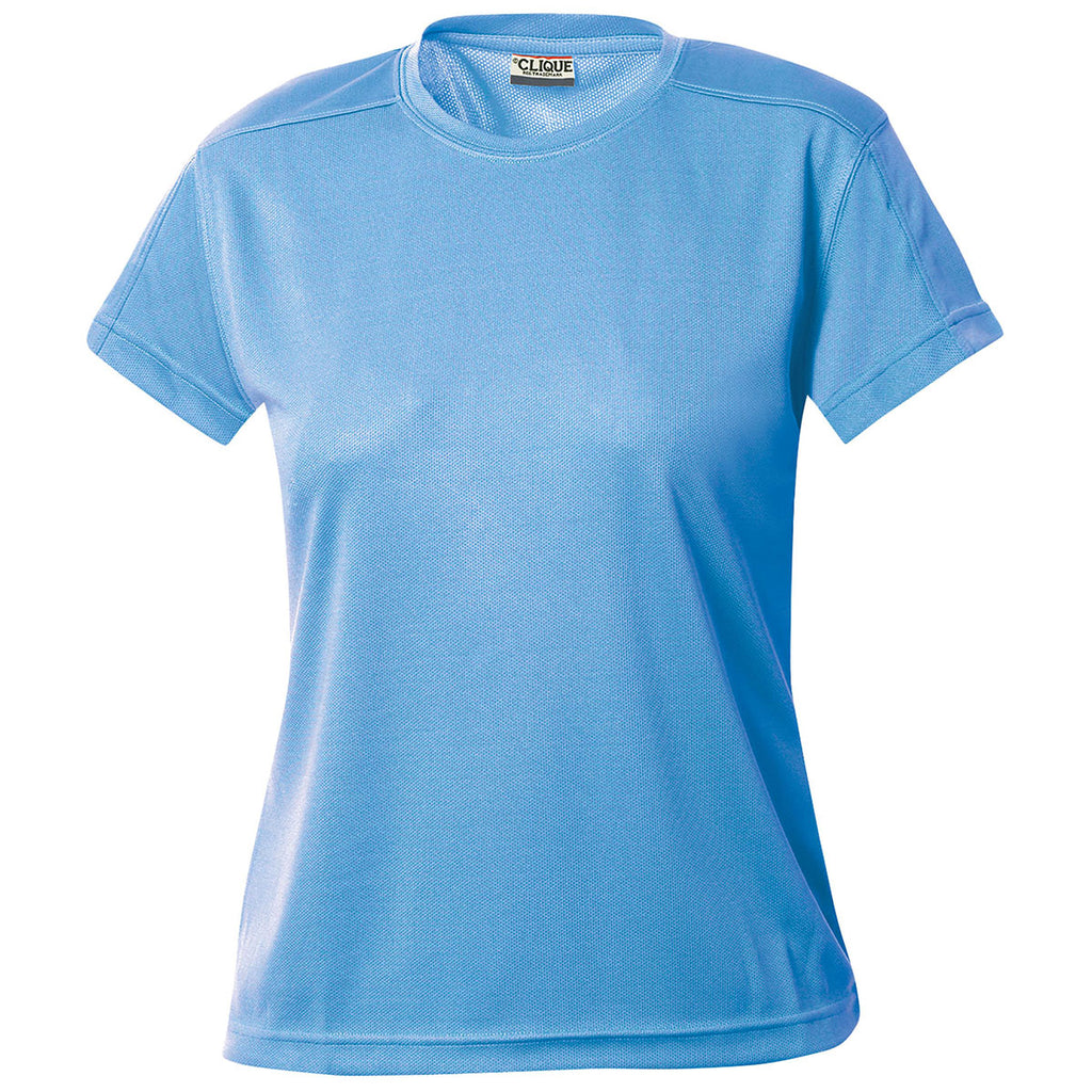 The Clique Women's Light Blue Ice Teeis the perfect t-shirt to add your company logo to and hand out to the masses. Advertise your company name by adding a screen print logo to the front of the shirt and distribute it as employee apparel and corporate apparel for events. Choose from a dozen dazzling colors and enjoy all the features this shirt has to offer including a comfortable 100% polyester material, double layer neck trim, pieced shoulders, taped neck seam, and open sleeves. This is sure to be a favorite amongst your employees and customers, so make sure you buy this item in bulk.Corresponding Men's Style:Clique Men's Light Blue Ice Tee