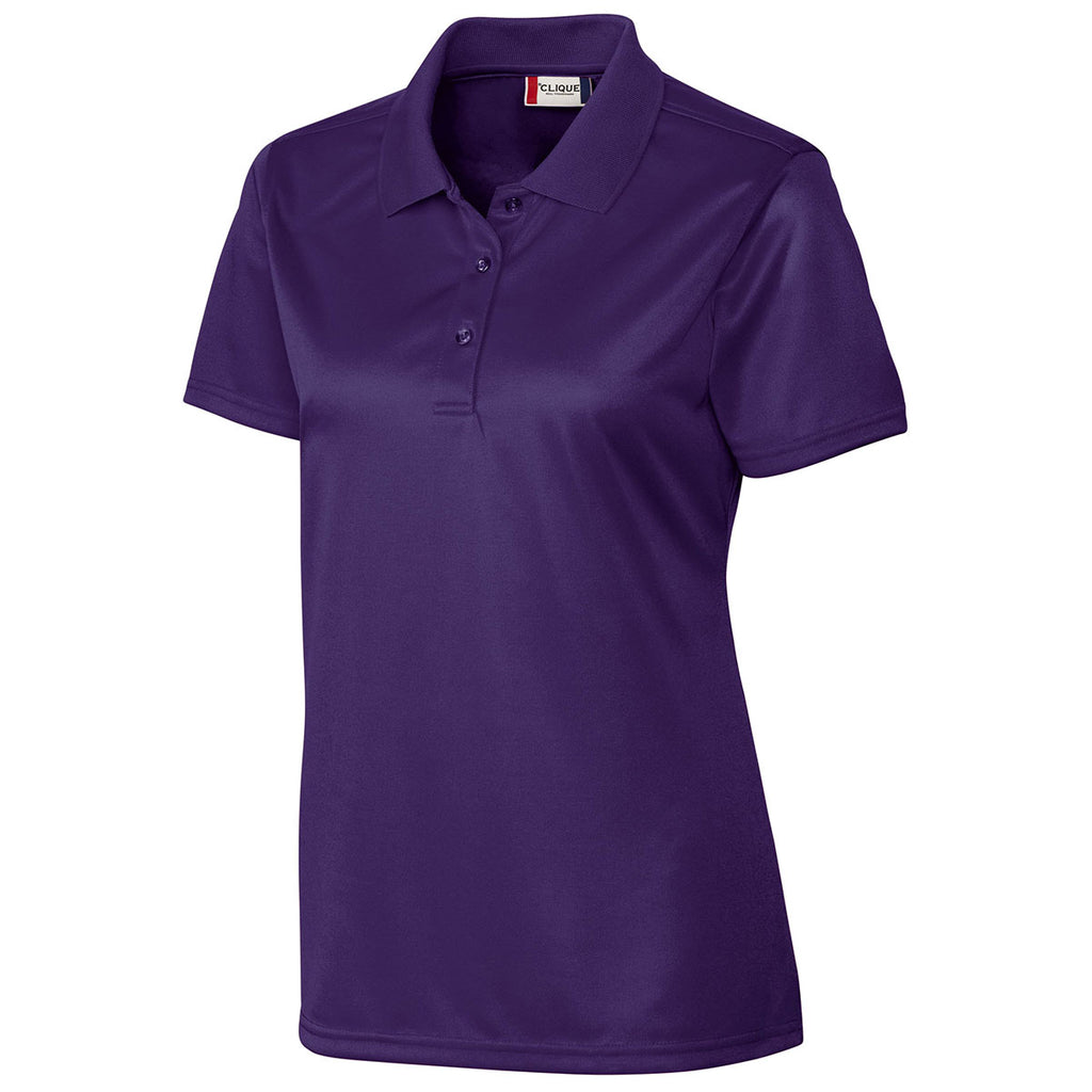 The Clique Women's College Purple Malmo Snag Proof Polo is style and comfort in one attractive polo shirt. When you add your company logo in embroidery to the polo shirt, it's also an excellent way to advertise your company. Available in a variety of aesthetically pleasing colors, this women's polo shirt is a sure bet. Other wonderful features include 100% polyester jersey material, three-button placket, IL50 certification for durability, and snag-proof fabric. Purchase this custom logo polo shirt to hand out as employee apparel or give out to guests at upcoming corporate events.Corresponding Men's Style:Clique Men's College Purple Malmo Snagproof Polo