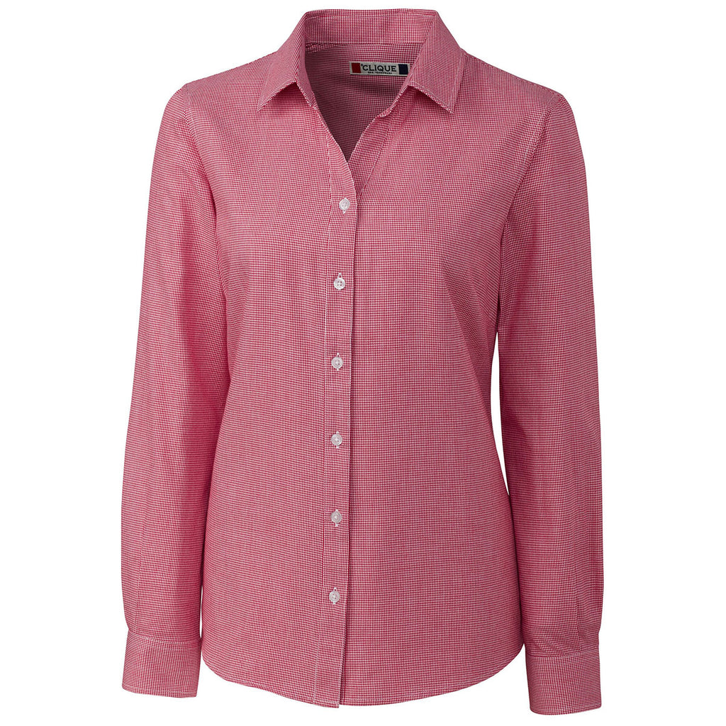 Clique Women's Red/White Long Sleeve Granna Stain Resistant Houndstooth