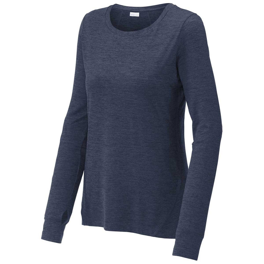 Sport-Tek Women's Dark Denim Heather Exchange 1.5 Long Sleeve Crew