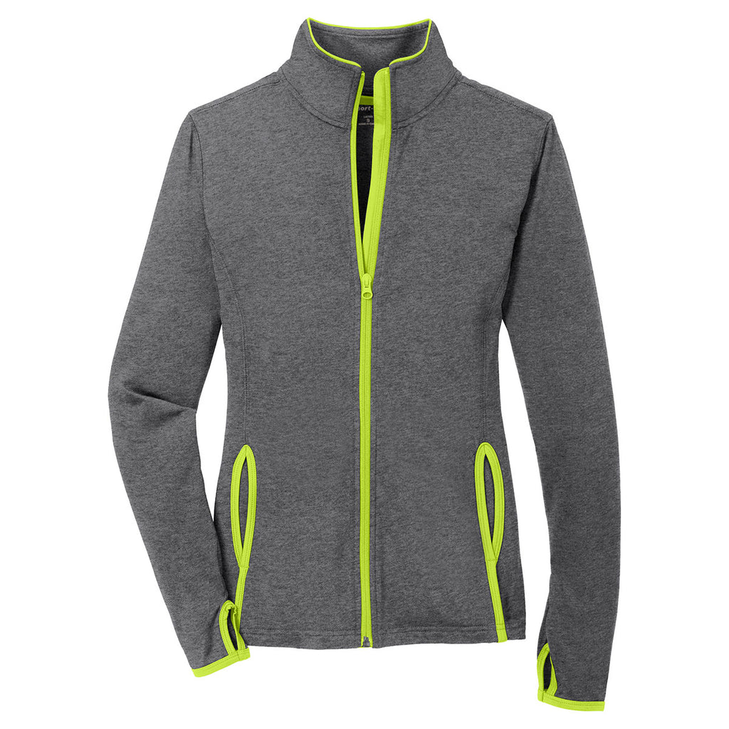 Sport-Tek Women's Charcoal Grey Heather/Charge Green Sport-Wick Stretch Contrast Full-Zip Jacket