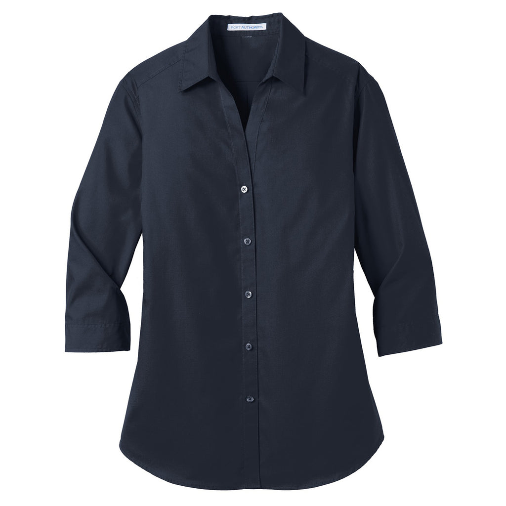 Port Authority Women's River Blue Navy 3/4-Sleeve Carefree Poplin Shirt