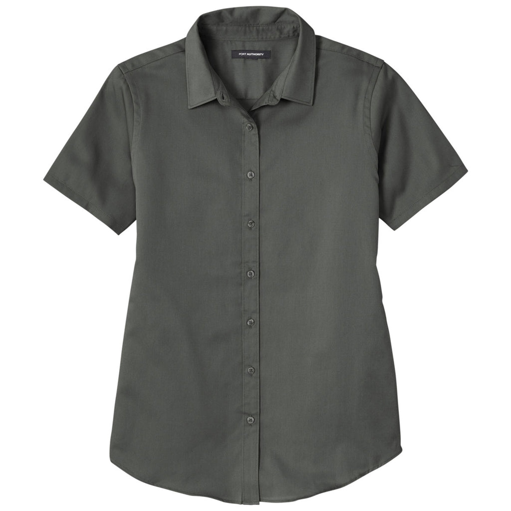 Sport a professional look with the custom embroidery Port Authority Women's Storm Grey Short Sleeve SuperPro React Twill Shirt. This shirt not only offers a professional look that is perfect for corporate apparel, but is tough enough to stand up to a hard da work. The wrinkle-resistant shirt is soft and smooth for a polished look. Stain release paired with easy care means you can wear this daily without concern. Add a company logo to create community among employees with employee apparel or add a custom logo to include this in a logoed apparel line. The choice is yours.Highlights