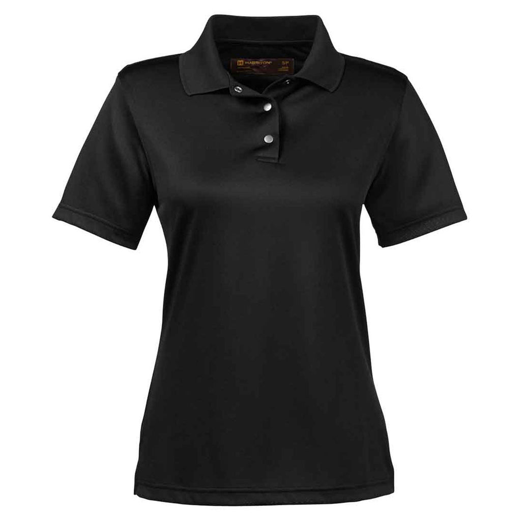 Harriton Women's Black Advantage IL Snap Placket Performance Polo