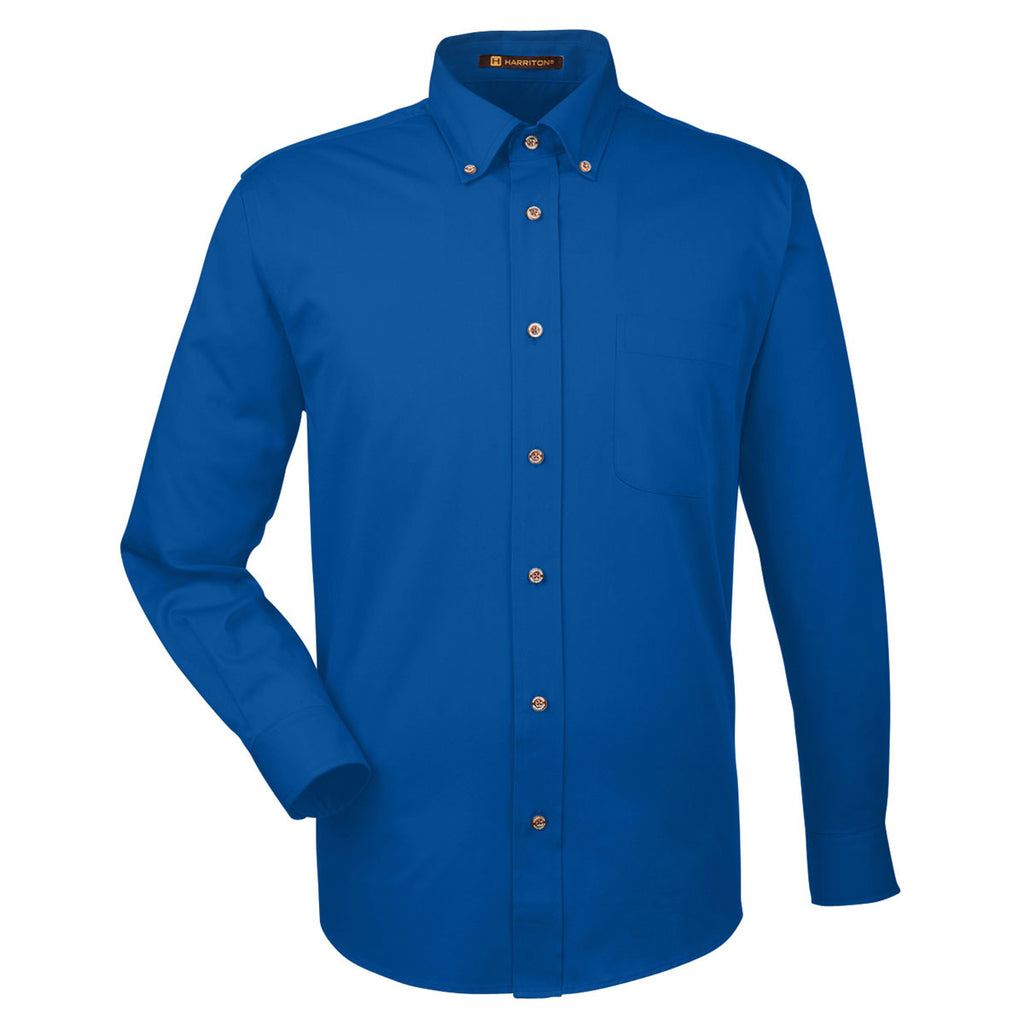 Harriton Men's French Blue Easy Blend Long-Sleeve Twill Shirt with Stain-Release