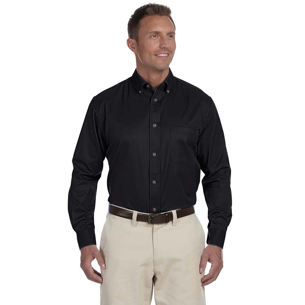 Harriton Men's Black Tall Easy Blend Long-Sleeve Twill Shirt with Stain-Release